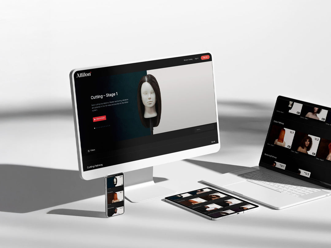 Allilon+ is our online video education platform — designed to support ongoing development beyond the classroom. It gives you access to a huge library of focused, technical hair education, built around the same clear systems and thinking used across our in-person courses.